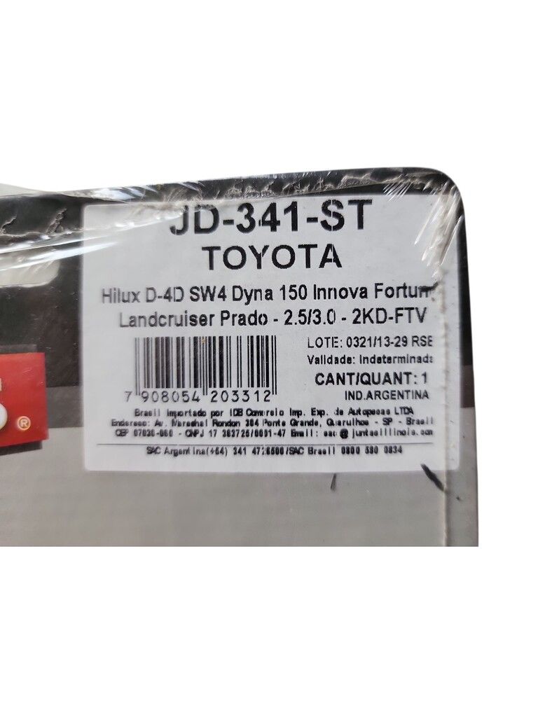 JD-341-ST Hilux D-4D SW4 Dyna 150 Innova Fortuner Landcruiser Prado – 2.5/3.0 – 2KD-FTV 1KD-FTV DOHC 16V