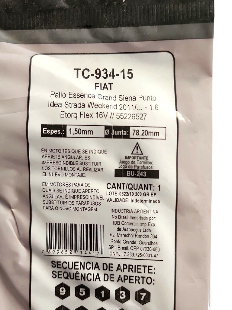 TC-934-15 Palio Essence Grand Siena Essence Punto Essence Idea Essence Strada Trekking Weekend Trekking 2011/... - 1.6 - Etorq Flex 16V // 55226527 cantidad